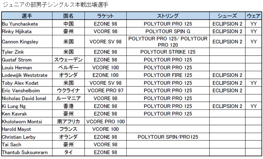 テニス4大大会の全豪オープン2019(1月14日~27日/オーストラリア・メルボルン)ジュニアの部男子シングルスにおいて、本戦出場者のヨネックスラケット使用率No.1※(64名中17名、27%)を達成しました。