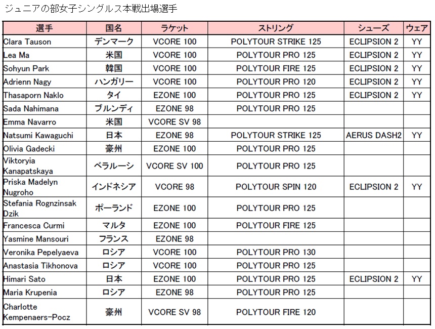 ジュニアの部女子シングルスでは本戦出場選手のラケット使用率No.2※を達成(64名中19名、30%)し、長年ジュニア選手をサポートしてきた結果、世界中でラケットの使用者が急増しています。