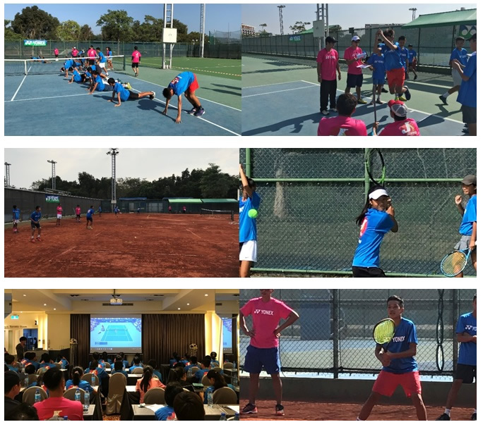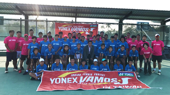 チャイニーズタイペイの台湾高雄市樹德科技大学テニスコートにて、ジュニア育成キャンプ「YONEX VAMOS・J」が開催され、 総勢34名の現地トップジュニアが参加しました。2011年より日本国内でスタートした「YONEX VAMOS・J」は、 テニス界を牽引する指導者による最新のコーチング、トレーニング技術によって、世界で活躍する選手の育成を目的としています。2015年からは、アジア全体のレベルアップを目的として、日本国外でもキャンプを実施しており、チャイニーズタイペイは5度目の開催です。