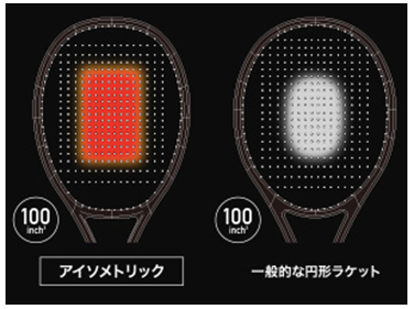 アイソメトリックとは、スウィートエリアを拡大させるヨネックス独自の形状理論。縦横のストリングの長さを均等に近づけることで、一般的な円形ラケットに比べ上下左右に7%※広いスウィートエリア を実現。