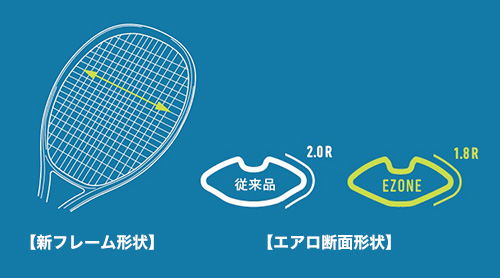 フレームには打球領域であるトップ部のストリング有効長を拡大した新形状とエッジを効かせ、フレームのたわみ量を7%※増加させたエアロ断面形状を採用。 オフセンターでも打ち負けない柔らかい打球感を実現しました。