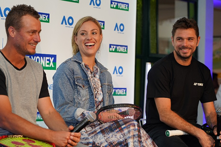 1月18日、全豪オープン開幕直前にチームヨネックスが参加するプレーヤーズパーティーを開催し、ファンとの交流を深めました。選手らは車に乗って颯爽と登場し、NEW EZONEのお披露目、全豪オープンオフィシャルストリンガーを5年連続で務めること、NKファンデーション(以下NK財団)とのサポートの発表などを行いました。