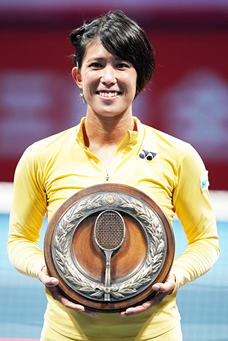 女子シングルス決勝はヨネックス対決に。JTAランキング17位の30歳・秋田史帆が世界ランキング71位で大会第1シードの日比野菜緒(ブラス)に5-7、6-0、6-0で逆転勝利を収め、悲願の初制覇を果たしました。