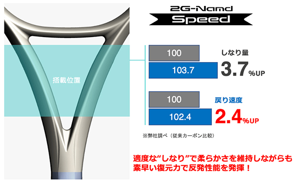 強靭なしなりと急激な復元力を生む「Namd」が「2G-Namd Speed」としてさらに進化し、変形からの復元力が飛躍的に向上。シャフト部に新たに搭載することで、素早いしなり戻りを生み、ボールのスピードとパワーを高めます。