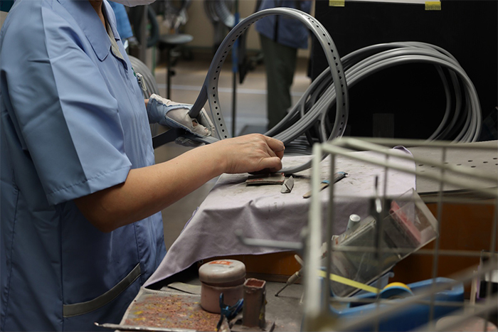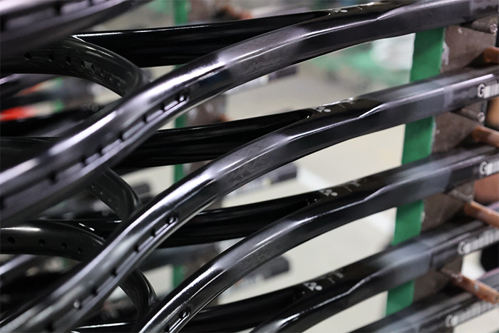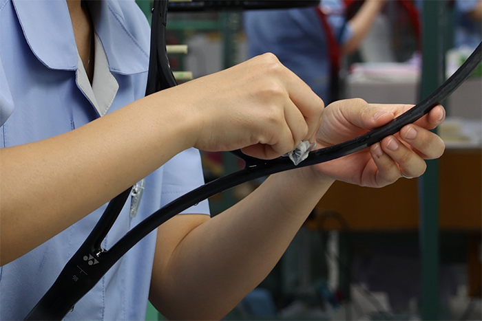 REGNAシリーズはパワーとコントロール性能を両立させ、それらを最大限高められるように各部に用いる素材を吟味し、新潟の技術開発部による精密な設計のもと開発されたラケットです。製造工程では、機械での作業だけでなく、熟練の技術者たちによる精緻な手作業も織り交ぜ、各工程では1本1本高い検査水準を経て新潟工場より出荷されます。