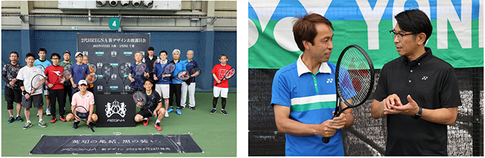 2022年5月22日には大阪府・江坂テニスセンター、5月29日には千葉県・吉田記念テニス研修センターでCLUB REGNA会員に向けて新デザインのお披露目試打会を実施いたしました。