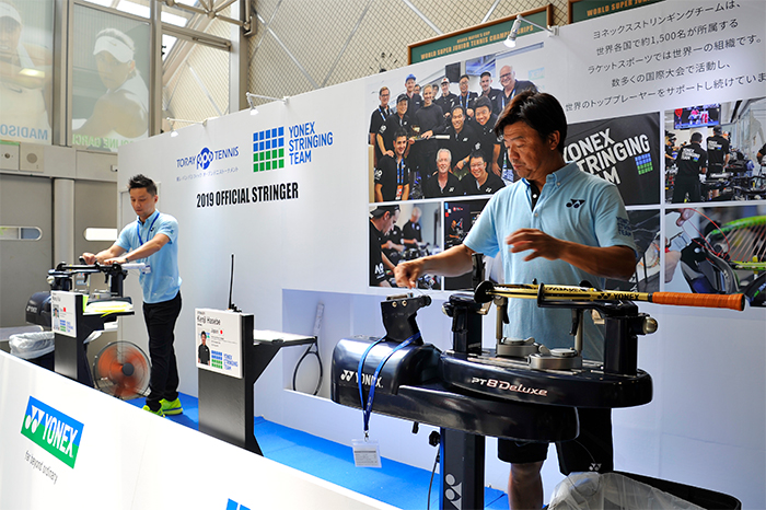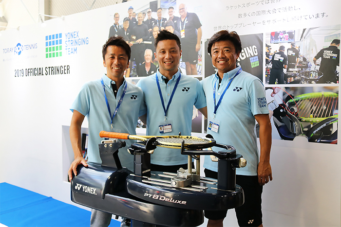 ヨネックスは大会期間中、世界各地からトップストリンガーを招集した「ヨネックスストリンギングチーム」を派遣します。ヨネックスストリンギングチームは様々な国際大会での経験に裏打ちされた確かな技術と、日本製の高性能なストリンギングマシンによるストリンギングサービスを行い、トッププレーヤーをサポートします。