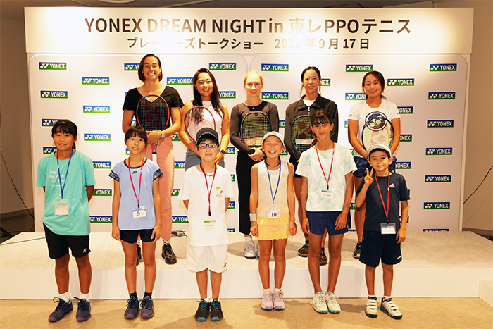 9月17日にチームヨネックス5選手が参加するトークイベント『YONEX DREAM NIGHT in 東レPPOテニス』を開催しました。司会はWOWOWの解説でおなじみのフローラン・ダバディ氏で、3年ぶりの開催となった東レ パン パシフィック オープンテニス(以下、東レPPOテニス)の出場選手とジュニア選手が、質問コーナーやクイズで交流を楽しみました。