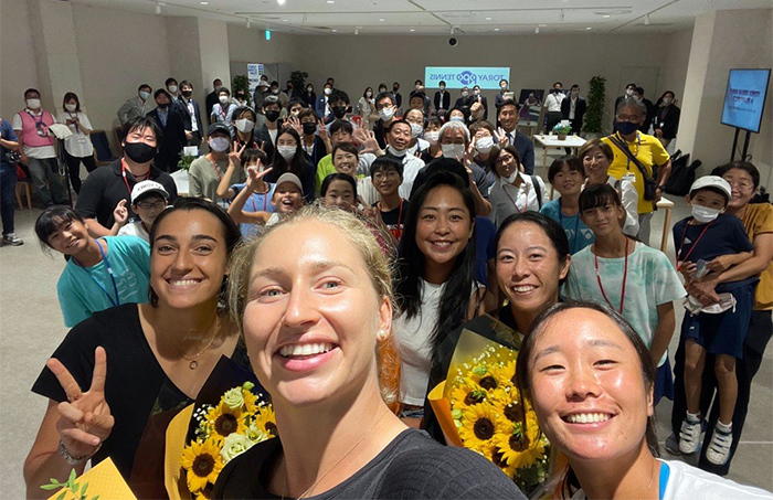 後列左から、キャロリン・ガルシア(フランス)、穂積絵莉、ダリア・サビル(オーストラリア)、柴原瑛菜、内藤祐希