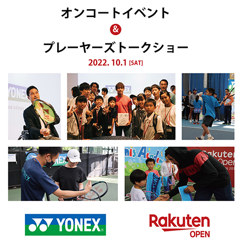 また、午後の部に参加された方の中から抽選で「プレーヤーズトークショー ~楽天ジャパンオープン・YONEX DREAM NIGHT~」にもご招待致します。選手を間近に見られる絶好のチャンスですので、是非たくさんのご応募お待ちしております。