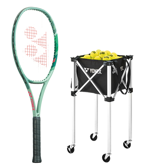 キャンペーン期間中、ヨネックステニスボール「ツアープラチナム」「ツアー」「チャンピオンシップ」のうち、いずれか5ダース(※1)以上ご購入いただいた方の中から抽選で5名様に新製品テニスラケット「PERCEPT」(※2)、50名様にキャスター付きボールバッグ(AC383C)をプレゼント