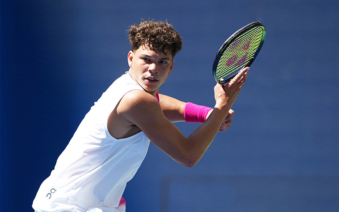 リンキー・ヒジカタ(オーストラリア)と4回戦で対戦したティアフォーは、立ち上がりこそ硬さがあったものの、第1セットを競り勝つと一気に加速。ストレート勝利でヨネックス対決を制しました。