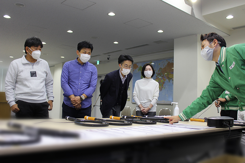 第3回目は初のリアルミーティングにて行われ、ついに意見を集約したサンプルラケット6本と対面しました。