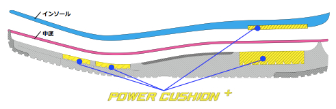 | ミッドソール | パワークッションプラス、合成樹脂、TPUシャンク | |