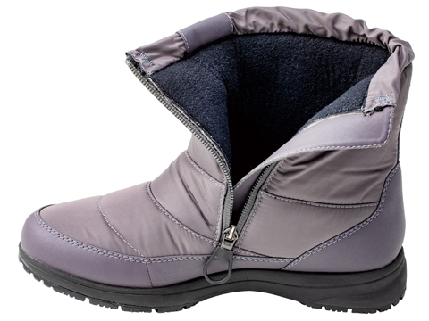 アッパーは表面の撥水効果と防水フィルム内蔵による2時間の防水構造。さらにコードロックで足首回りをフィットさせるとともに、あらゆる角度からの雨や雪の侵入を防ぎます。内側には、湿気を吸収し発熱する保温性の高いフリースライニングを採用。柔らかな肌ざわりで、抗菌防臭機能も備えます。