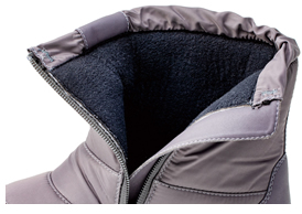 アッパーの内側には、湿気を吸収し発熱する保温性の高いフリースライニングを採用。柔らかな肌ざわりで、抗菌防臭機能も備えます。