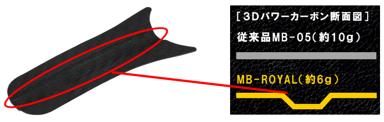 一般的に金属を使用することが多いソール補強パーツに、カーボンを採用。ラケット・ゴルフクラブで培ったカーボン技術を生かし、立体成型した「3Dパワーカーボン」を搭載する事で40%もの大幅な軽量化(従来品MB-05との比較)を実現しながら、ソール剛性・強度を高める事に成功。ビジネスマンの足をしっかりと支えます。