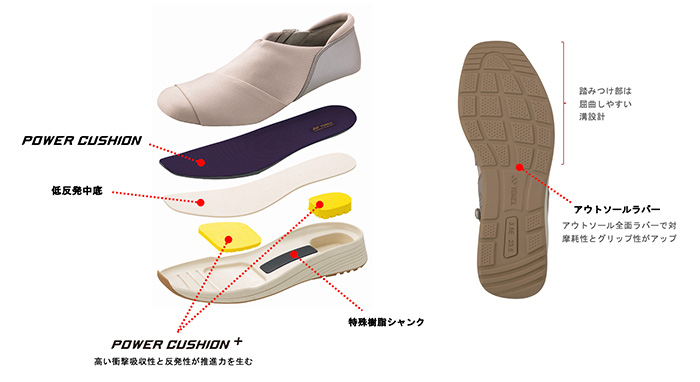 「パワークッション®プラス」を搭載新設計ソールで、ふわっと柔らか、安定感もプラス!