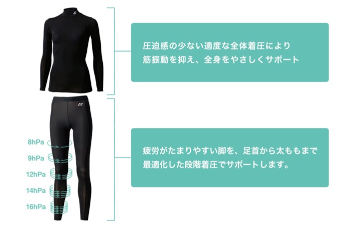 適度な全体着圧(上半身)+段階着圧(下半身)で筋振動を抑えコアのバランスを整えるフィットネスモデルにソフトタイプが新登場。従来モデルよりさらにソフトに優しい着心地になりました。