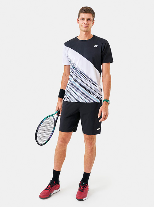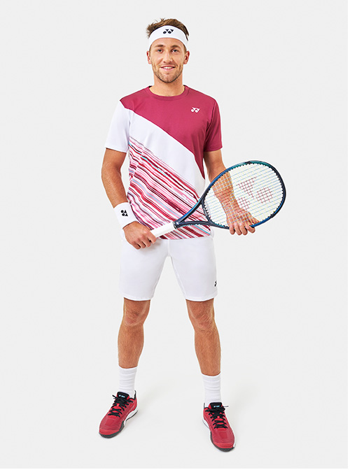 同シーズンで選手が着用するトーナメントスタイルテニスウェア(8月中旬発売)は、キシリトールの涼感効果で衣服内温度を約3℃低く保つ『ベリークール』を搭載。加えて、軽やかな動作を実現する『プレシジョンムーブ』を採用し、快適なプレーをサポートします。環境に配慮し、再生ポリエステルを使用しております。